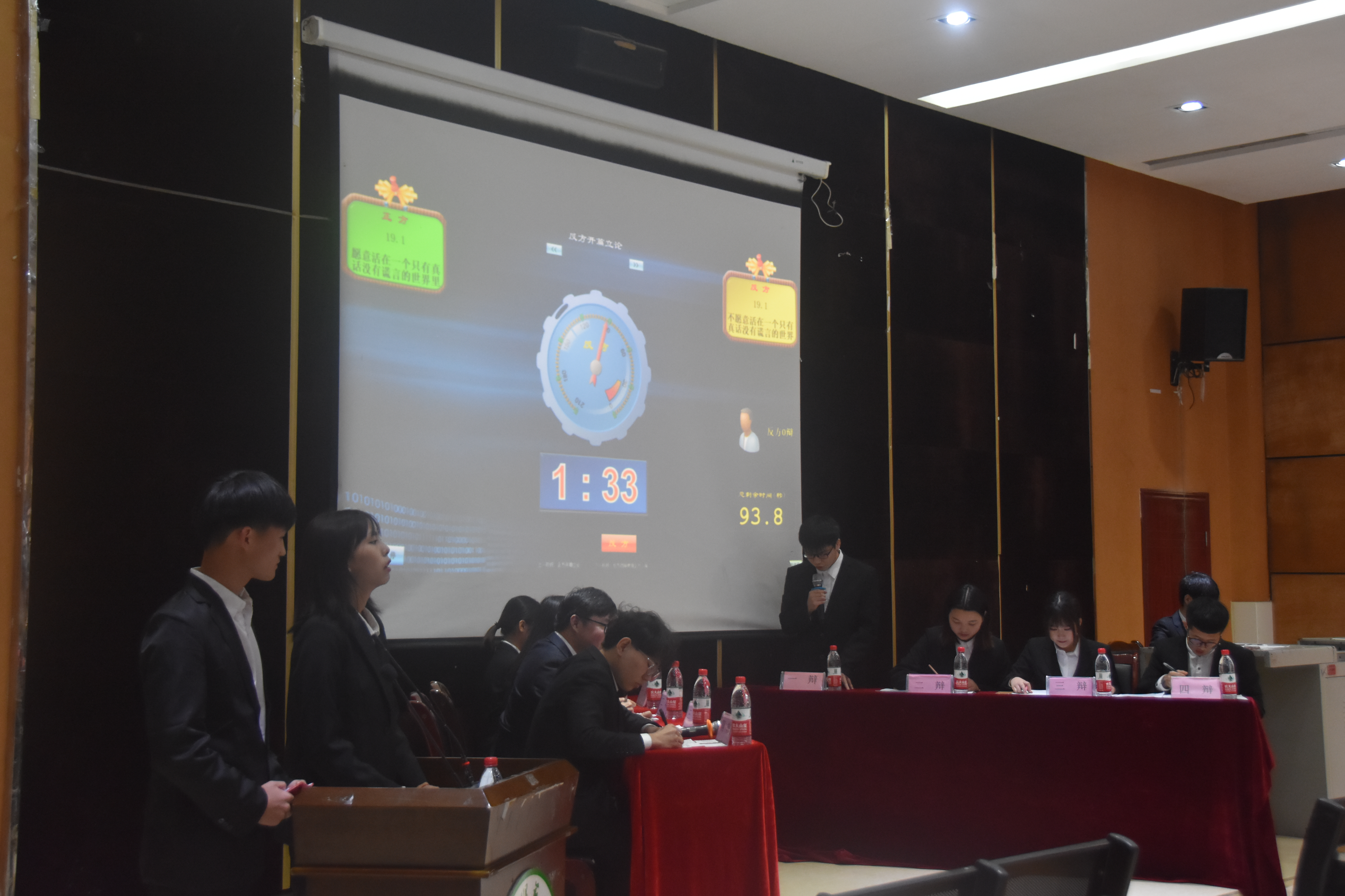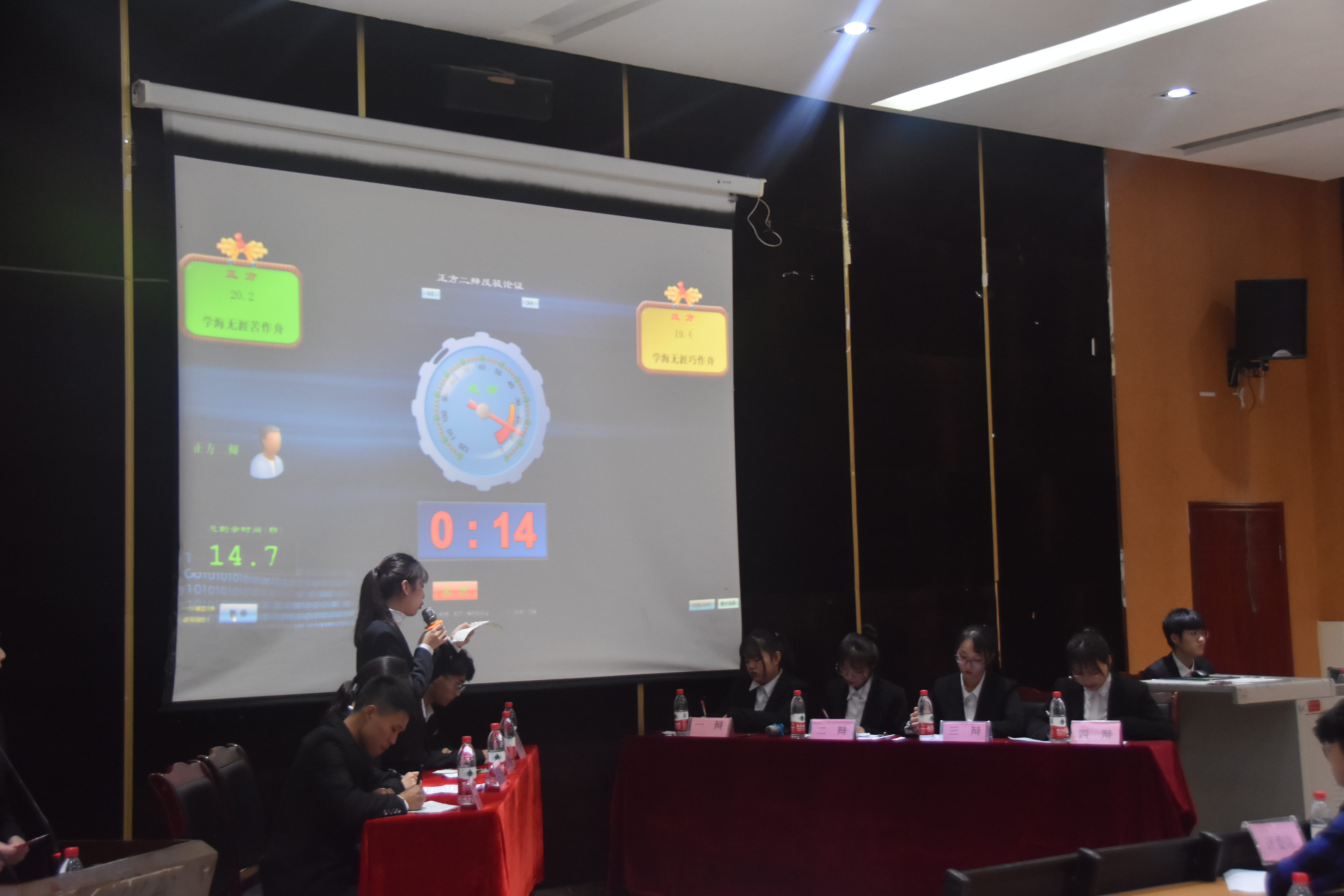 本次辩论赛是辩论赛举办以来参赛队伍最多的一次,共有18支队伍参赛,同时评比方式也改为积分制,最终根据积分获得前三名的队伍是:19级1班侯祥宇队11分,19级4班陶聃队10分,19级1班刘国巧队8分。