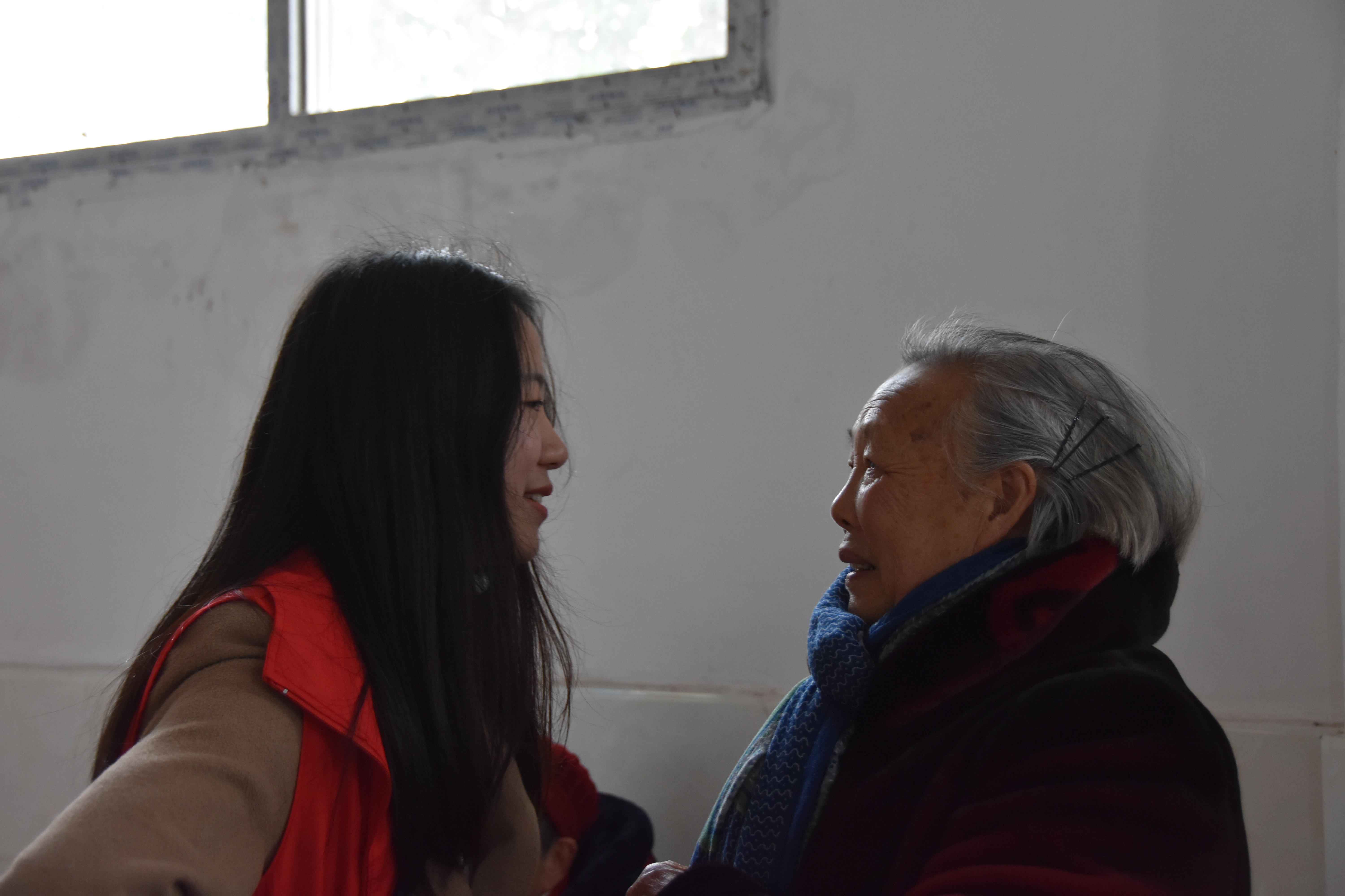 队员们在玉兰山山庄和这里的老人们见面时,他们对于新到来的队员们满是好奇和欢喜,这里的老人们中有退休工程师,退休老教师,还有参与过抗美援朝的老人等。下午,为活跃气氛,让老人们感受温情,队员们向老人们献上了才艺秀。舞蹈,歌曲,都让老人们在这冬天感受到了温暖,而其中最能让老人们感动的是歌曲《我的中国心》,老人们也跟着队员们一起哼唱起来。同时,老人们都融入队员们中,唱起了《南泥湾》。最后,我们得知在玉兰山庄老年公寓中,有一位为老人们默默奉献的人,他不收取老人们的一分钱,为老人们免费修理头发,这一件件小事,反应出一颗美好的心灵。