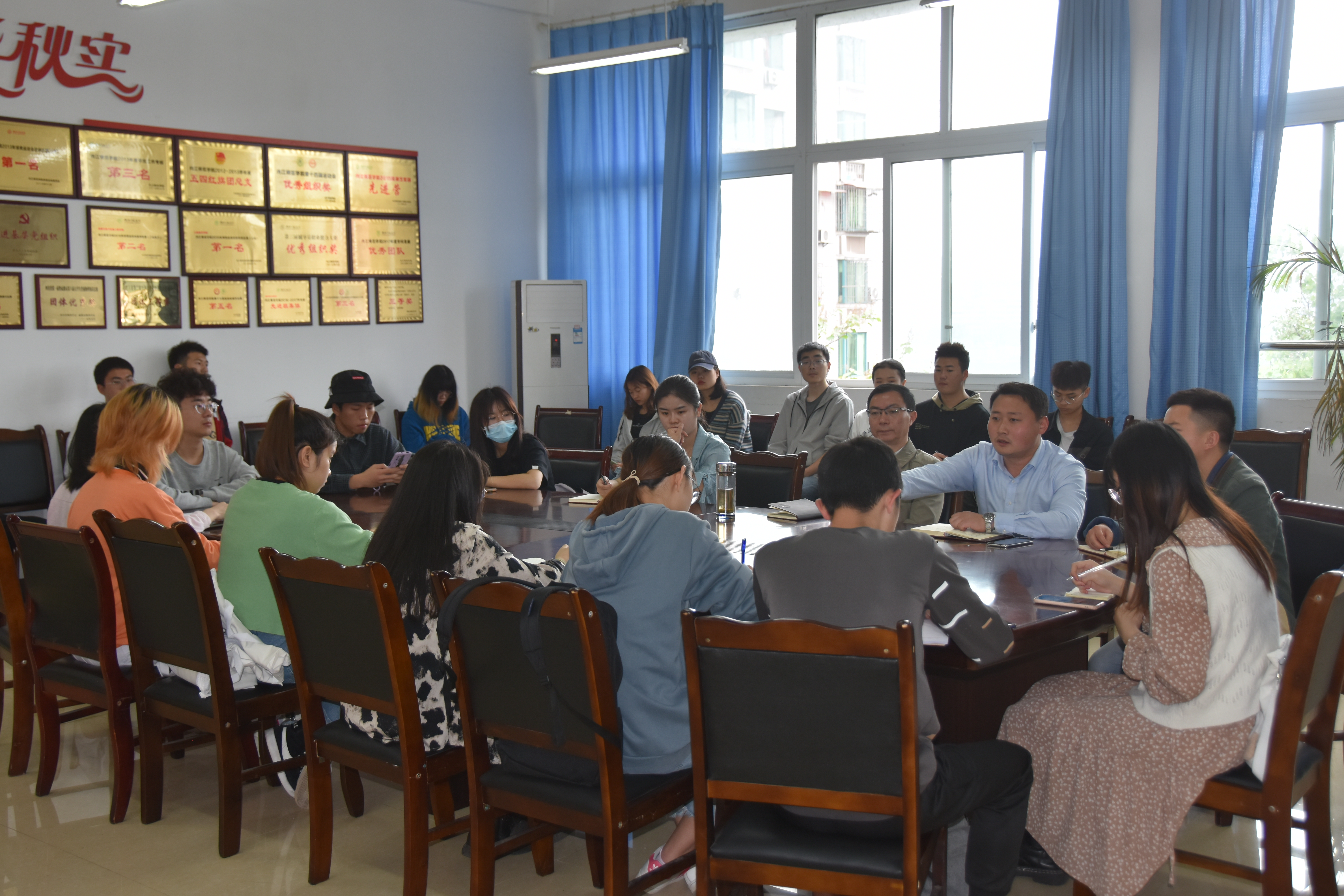 会议伊始,蒲老师谈到近期学工办老师在走进课堂、走访寝室的过程中所发现的一些问题,如寝室内务整理、上课出勤、课堂听课状态等。针对这些现象,他告诫同学们,在日常生活方面,要保持良好的生活习惯,在宿舍不得使用大功率电器,不得晚归、夜不归寝,不得沉迷网络游戏。在学风建设方面,要杜绝迟到早退现象,严格遵守请假制度,全院各班严格落实手机袋的使用,彻底根除上课玩手机行为。会议最后,向泾源书记作出总结,他着重强调了学风建设方面的重要性,并告诫各班班长,作为班委的重要成员,一定要发挥好带头作用,认真督促同学们做好各项事务,鼓励同学们积极参加学院活动、学科竞赛等,提高个人素养和生活品质,对班级内部存在的问题应及时反映及时整改。